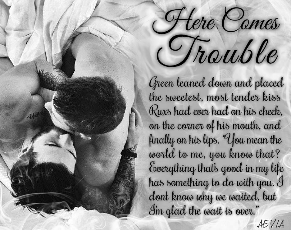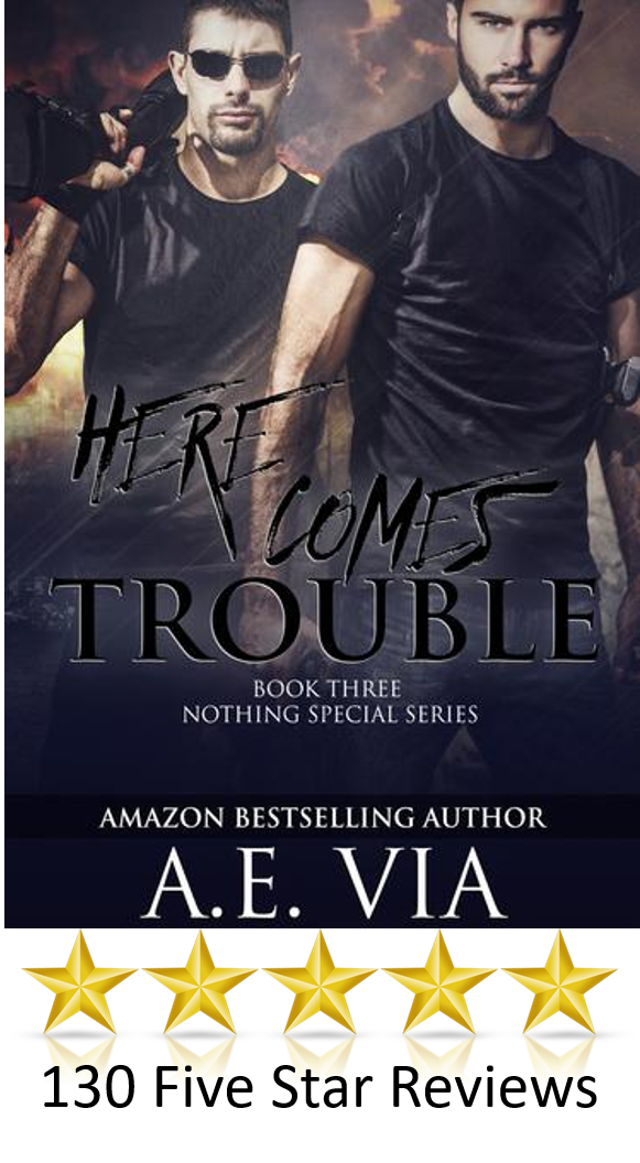 Another winner from A.E. Via! The Nothing Special series that features Book 1-Nothing Special and Book 2-Embracing his Syn, is continuing with Book 3-Here Comes Trouble. Detectives Mark Ruxsberg and Chris Green are the enforcers for God and Day's Tactical Narcotics Team in ATL and they are the bad ass front men for the team of huge, dangerous, not to be f**ked with cops. Each of the team are strong but infinitely caring for one another, always having their guys' back when needed.