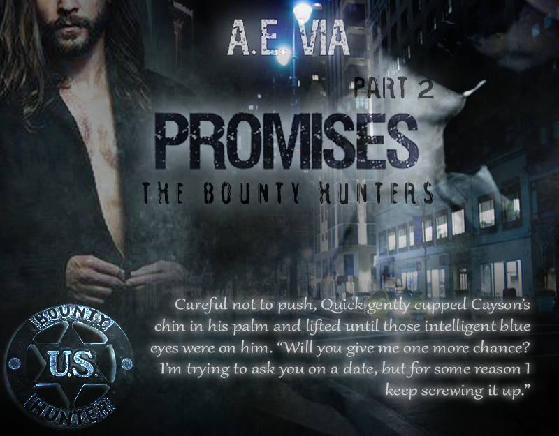 “Cayson, would you like to come in and get out of the cold for a bit?” Quick smiled, pulling the door open wider. The man was blabbering like a silly fool. But Quick new exactly why Cayson was nervous about coming into his home again. He’d make sure the man felt welcome this time. He wasn’t typically an asshole, especially to nice doctors who saved his best friend’s life, but damn if Cayson didn’t catch him off guard that afternoon he’d come home to find the sexy doctor in his personal space. He was supposed to be there to check up on Duke and Vaughan’s recovery, but Cayson was examining everything but his patients when Quick had come in wearing his bounty hunting gear. Those focused, blue eyes brazenly surveyed him like he was a piece of USDA prime rib in a butcher’s window. He could see Cayson’s chest rise and fall with his elevated, lustful breathing. But to do it right in front of his son and Duke, that wasn’t cool. He was a private man. If the doctor was interested in him, then he should’ve approached Quick privately and asked him out like a real man, not used trickery.